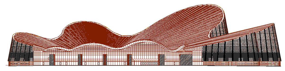 南通大劇院造型獨(dú)特,形似鋼琴、狀如紙鳶。幕墻建筑高度57m,分為玻璃幕墻系統(tǒng)、開放式石材幕墻系統(tǒng)、開縫鋁板幕墻系統(tǒng)、門窗系統(tǒng)、異形屋面系統(tǒng)等,幕墻及屋面總面積達(dá)到8.5萬(wàn)㎡。