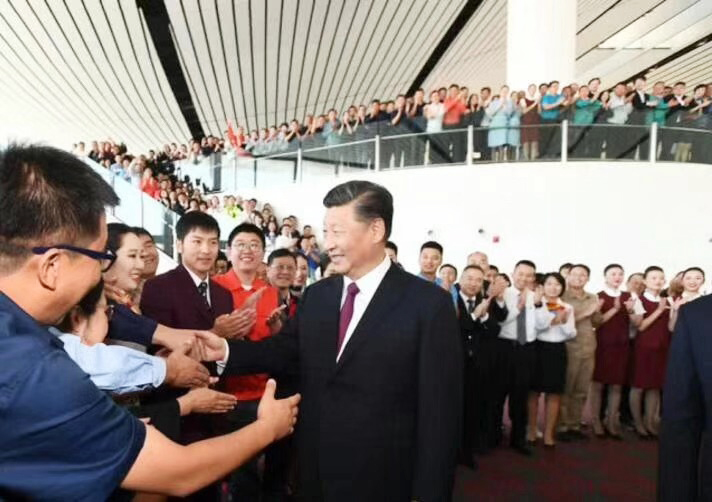 習(xí)近平總書記宣布機(jī)場(chǎng)正式投運(yùn)(圖片源自新華網(wǎng))