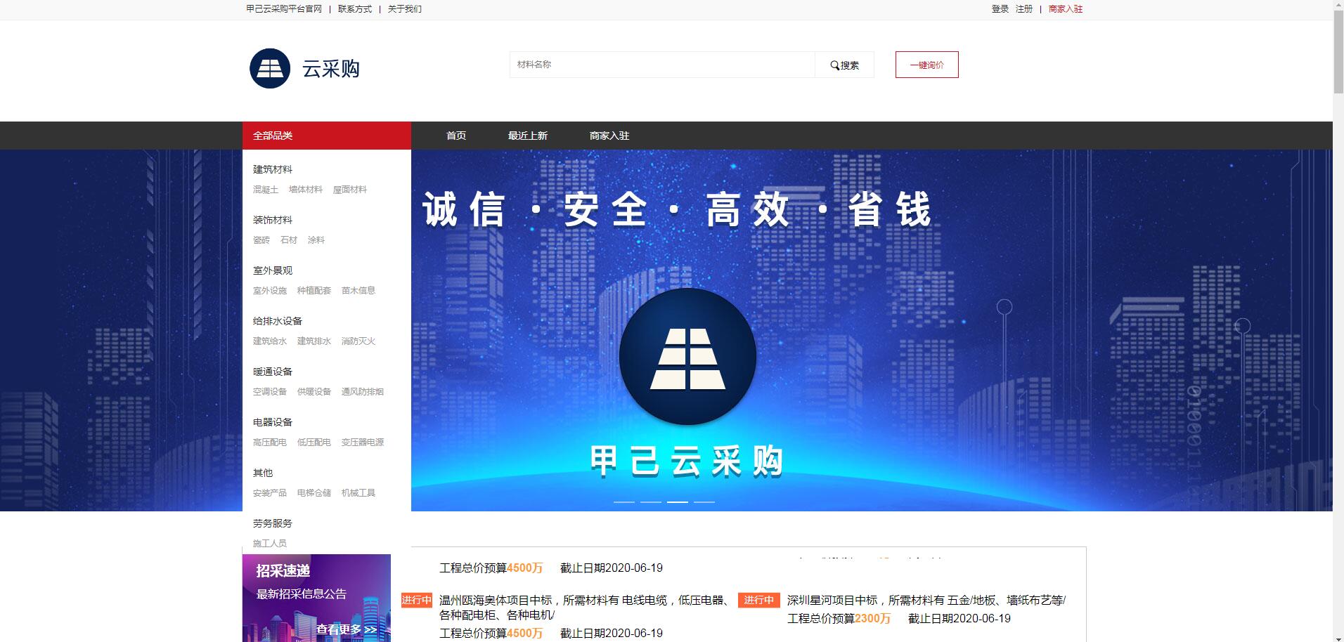 旨在提供“誠(chéng)信經(jīng)營(yíng)、優(yōu)質(zhì)優(yōu)價(jià)、方便快捷、安全透明”的一站式綜合采購(gòu)服務(wù),立志成為新時(shí)代最好的采購(gòu)互聯(lián)網(wǎng)平臺(tái)! 一句話概括:甲己云采購(gòu)就是建筑裝飾行業(yè)的“天貓” 甲己云采購(gòu)平臺(tái)網(wǎng)址:https://ycg.jiaji16.com。