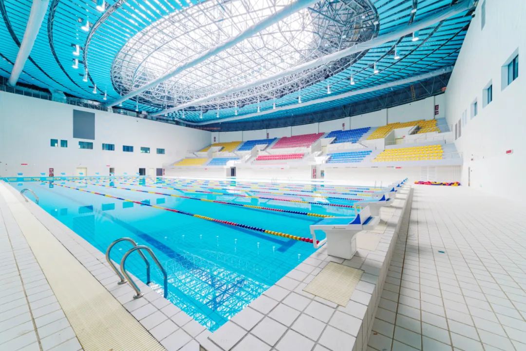 博大負(fù)責(zé)的施工區(qū)域涵蓋體育館、運(yùn)動(dòng)場(chǎng)、游泳館、人防地下室,聲學(xué)吸音等全部裝飾工程。其中運(yùn)動(dòng)場(chǎng)東、西看臺(tái)兩側(cè)均為弧形造型,現(xiàn)場(chǎng)工期緊、任務(wù)重,交叉作業(yè)多,協(xié)調(diào)難度大,配合要求高。