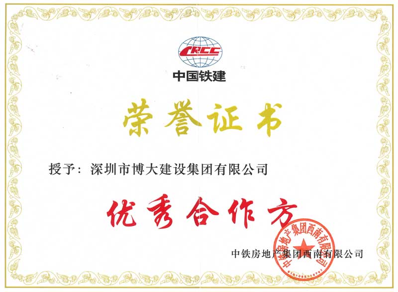 博大建設(shè)集團(tuán)作為中國鐵建的長期合作伙伴,已連續(xù)數(shù)年榮獲“優(yōu)秀合作方”稱號。