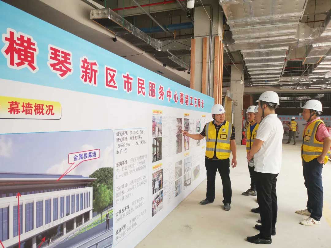 8月31日下午,中建三局南方區(qū)域組織旗下100余名管理人員前往珠海橫琴新區(qū)市民服務中心建設項目觀摩學習,博大建設集團作為幕墻方向的施工單位,詳細向觀摩團展示博大幕墻的新科技、施工工藝工法和最終呈現(xiàn)效果。