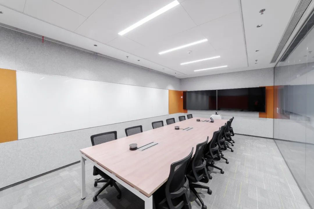 辦公室墻面采用多彩噴繪膜,結(jié)合今日頭條公司的企業(yè)文化,彰顯創(chuàng)新科技綠色建筑的人文關(guān)懷;地面采用膠地板鋪設(shè),會議室等采用降噪的系統(tǒng)玻璃隔斷,給人一種簡潔、高雅、寧靜的感覺。